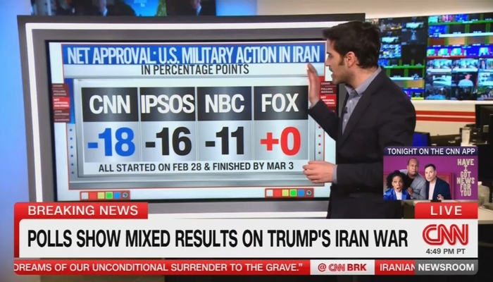 Following the U.S. and Israeli airstrikes against Iran on February 28, media outlets swiftly conducted polls that showed a majority of Americans disapproved of the military action. According to Enten, the initial results revealed that 51% of Americans disapproved of the action, while only 40% approved, creating an 11-point split.